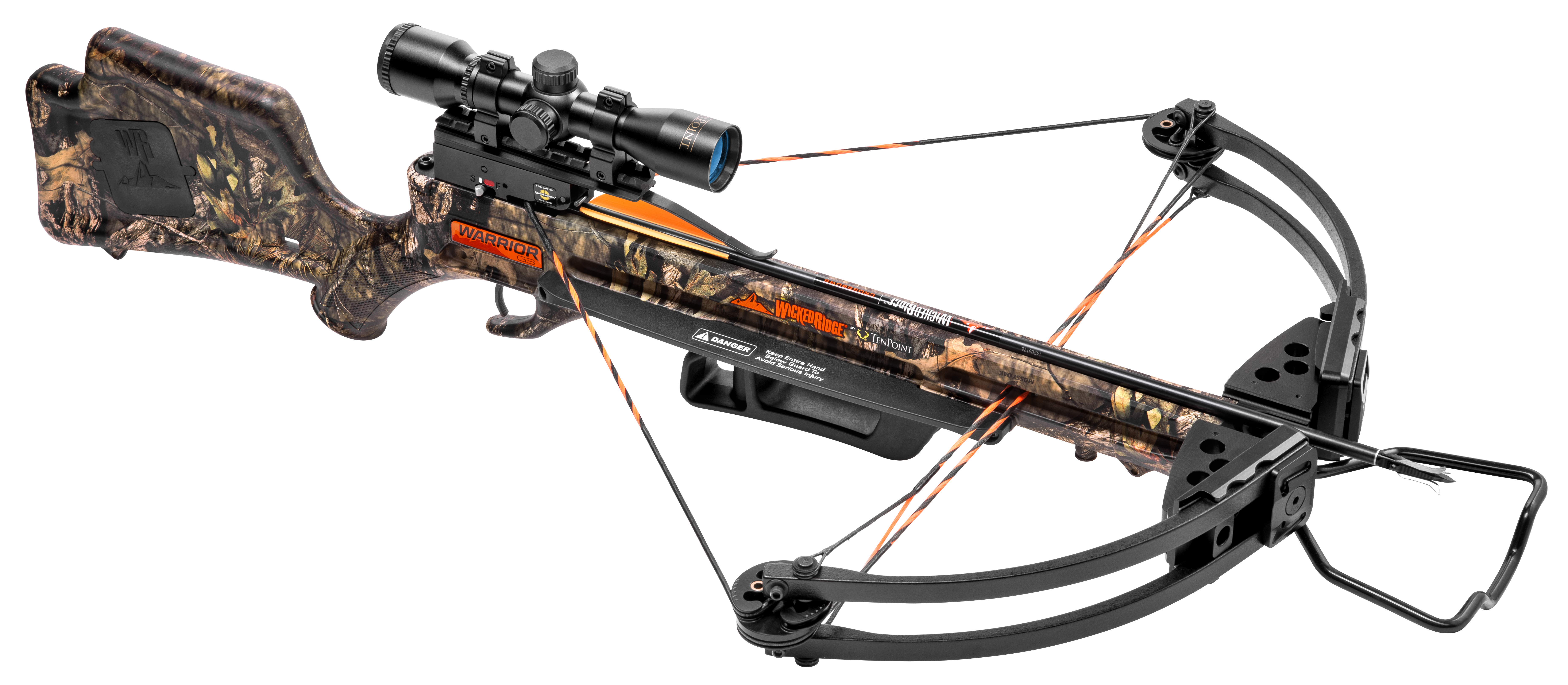 The two assemblies combined, without accessories, weigh only 6.6-pounds. The Warrior G3 is double-dip fluid imaged in Mossy Oak Break-Up Country camo pattern. Its package includes a TenPoint 3x Multi-Line™ Scope, 3 Wicked Ridge aluminum arrows, and a quiver. Suggested retail price for Warrior G3 is $449